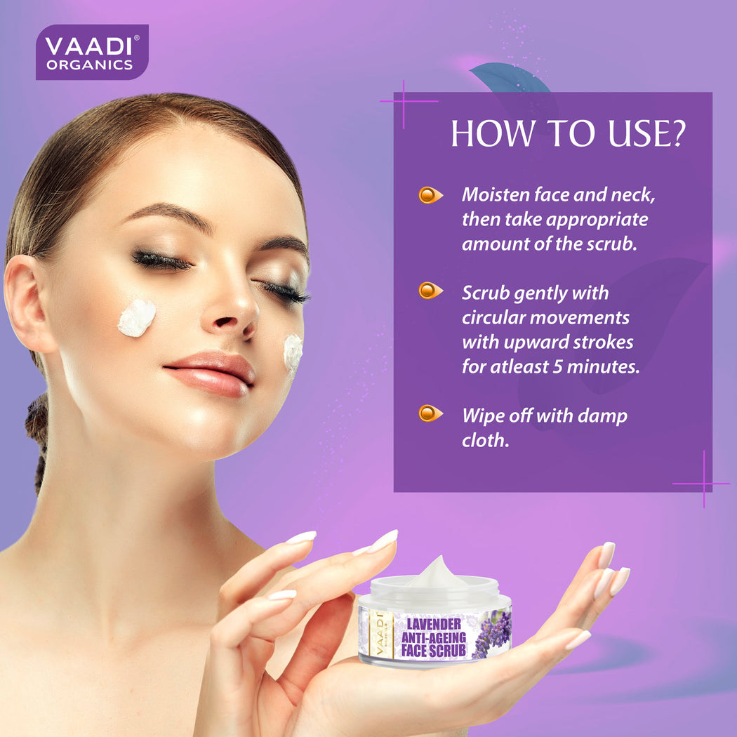 Anti Ageing Organic Lavender Scrub with Rosemary Extract - Boosts Cellular Renewal - Keeps Skin Firm (50 gms / 2 oz)